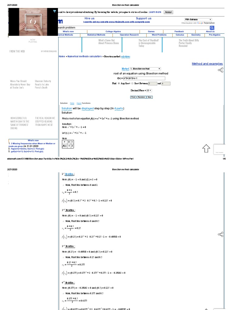 Bisection Method Calculator Pdf Numerical Analysis Analysis