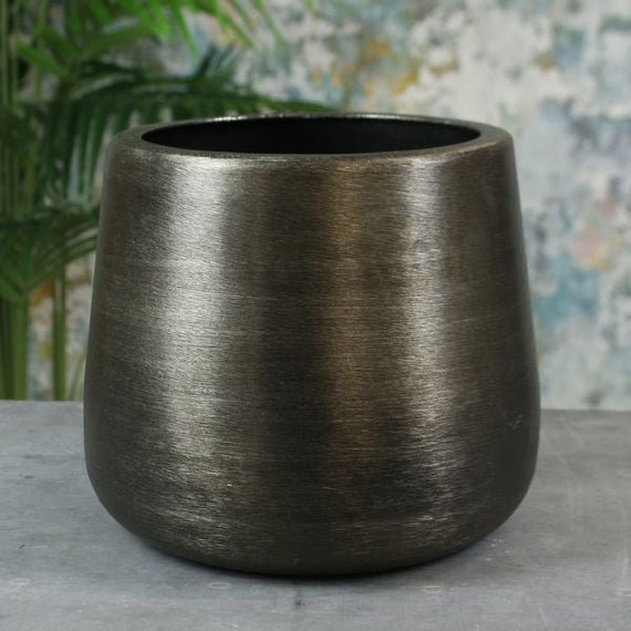 Brushed Metal Planter Black Planter Large Uk Indoor Planters Etsy Uk